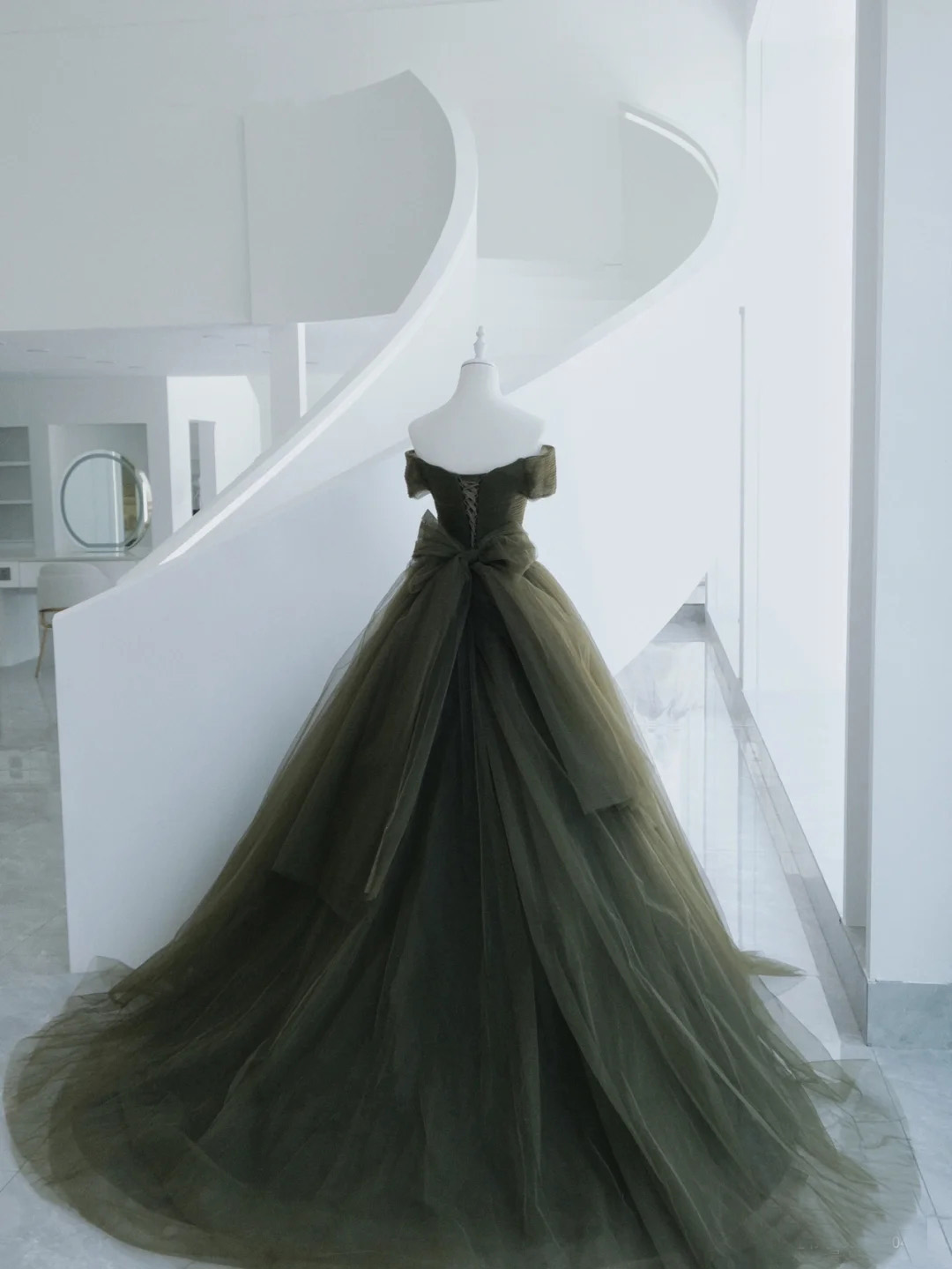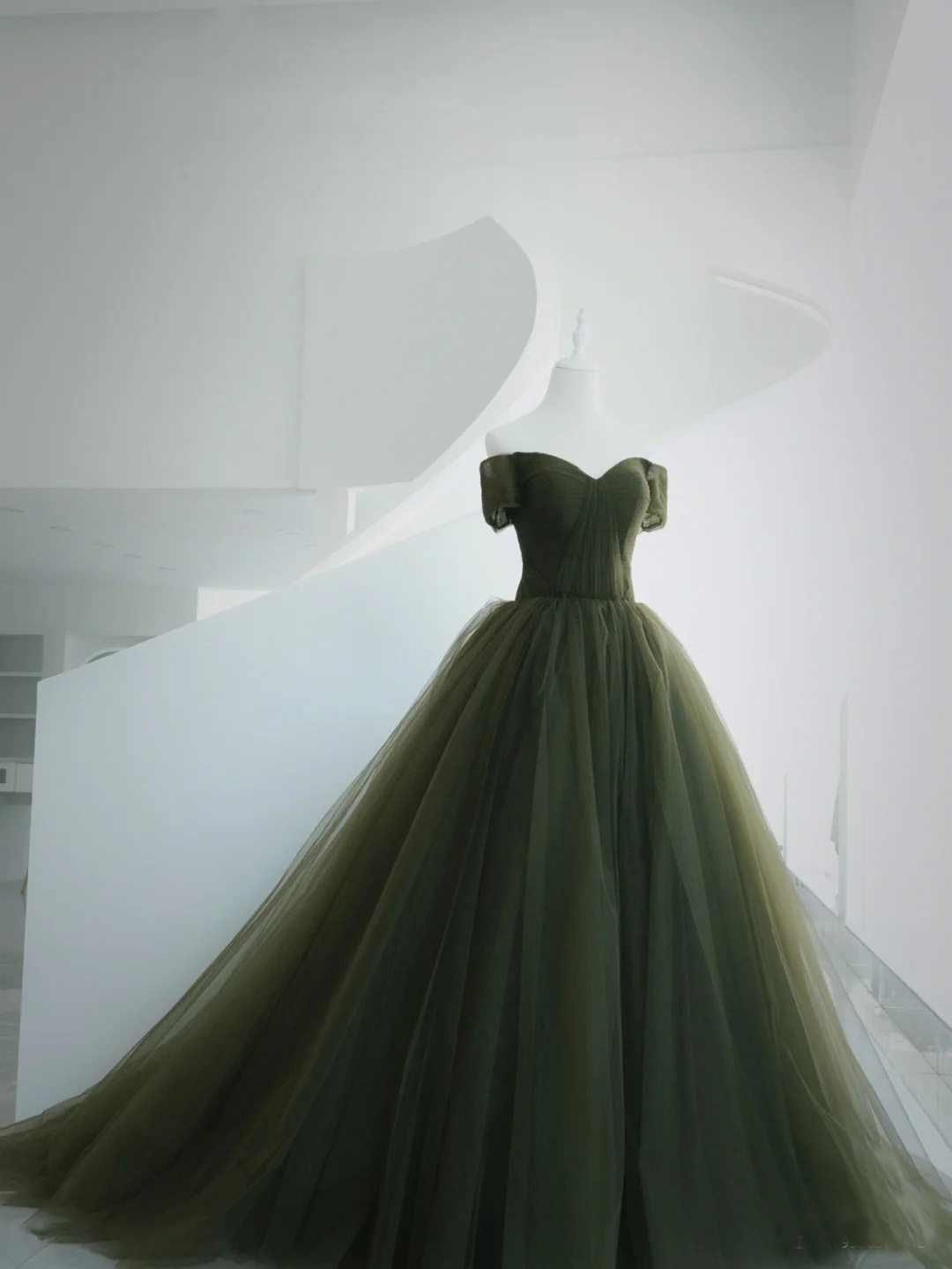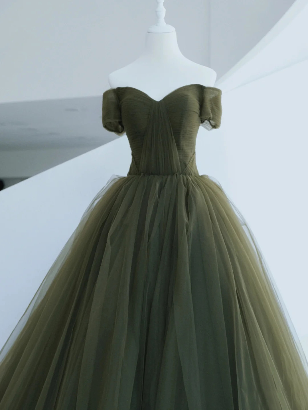 Off the Shoulder Dark Green Wedding Dresses Ruched Tulle Wedding Gowns with Lace Up Gothic Bridal Dress