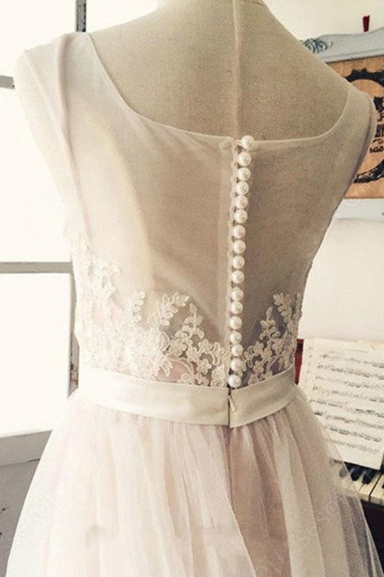 Square Neck Champagne Wedding Dresses Lace Appliques Boho Bridal Dress with Sheer Back Affordable Wedding Gowns
