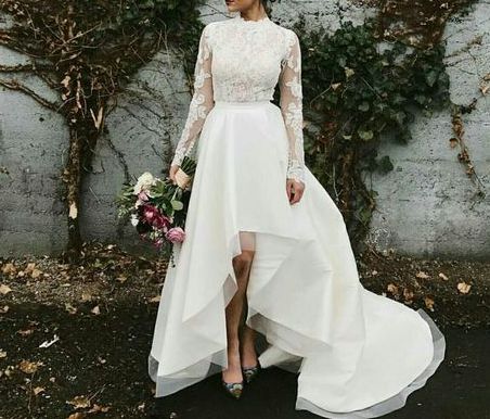High Low Wedding Dresses Lace Appliques Long Sleeves Wedding Gowns with Sweep Train Country Bridal Dress