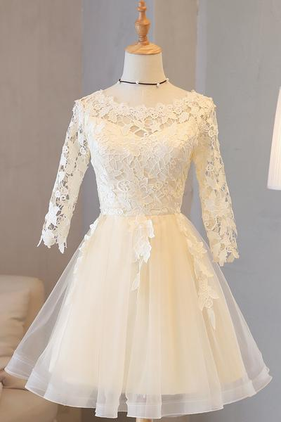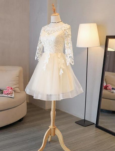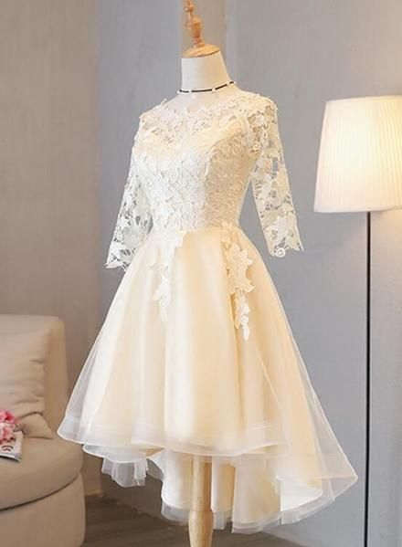 Cute High Low Homecoming Dresses Lace Appliques Light Champgne Evening Gowns with Zipper Simple Party Wear for Women