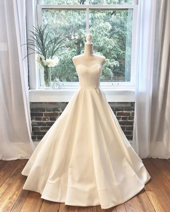 Strapless Ball Gown Wedding Dresses Pleated Satin Wedding Gowns Sleeveless Ivory Bridal Dress