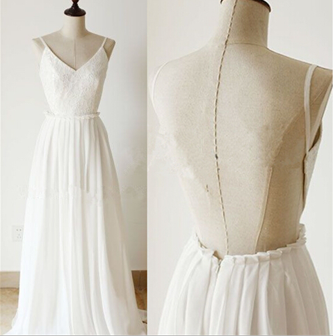 Spaghetti Straps Beach Wedding Dresses Lace Appliques Simple Wedding Gowns A Line Bridal Dress Online
