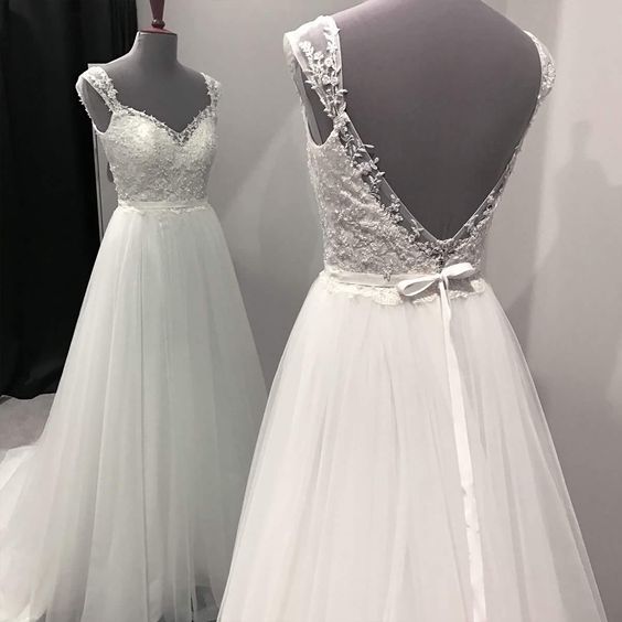 Elegant V-Neck Lace Wedding Dresses A Line Affordable Wedding Gowns with Open Back Beach Bridal Dress