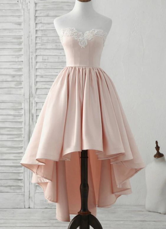 Sweetheart Hi-Lo Prom Dresses Light Pink Satin Homecoming Dress Lace Appliques Simple Party Gowns