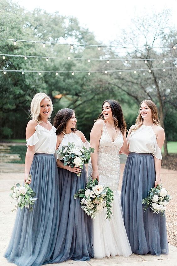 Spaghetti Straps Dusty Blue Bridesmaid Dresses A Line Boho Maid of Honor Dress Ruched Tulle Wedding Party Gowns