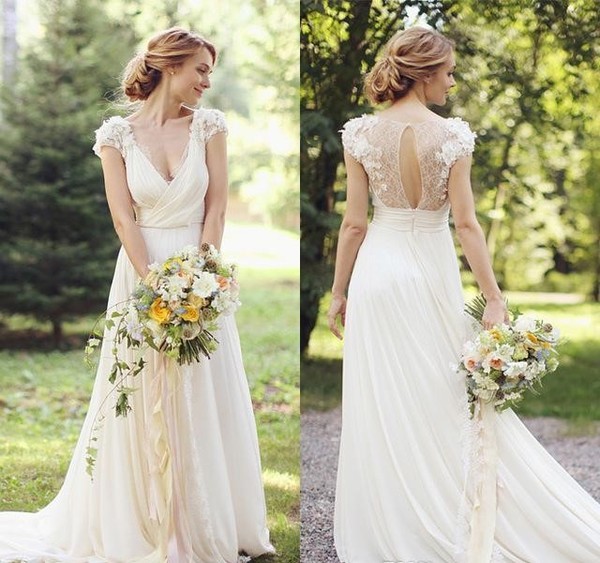 Deep V-Neck Lace Wedding Dresses Short Sleeves Country Wedding Gowns A Line Boho Bridal Dress