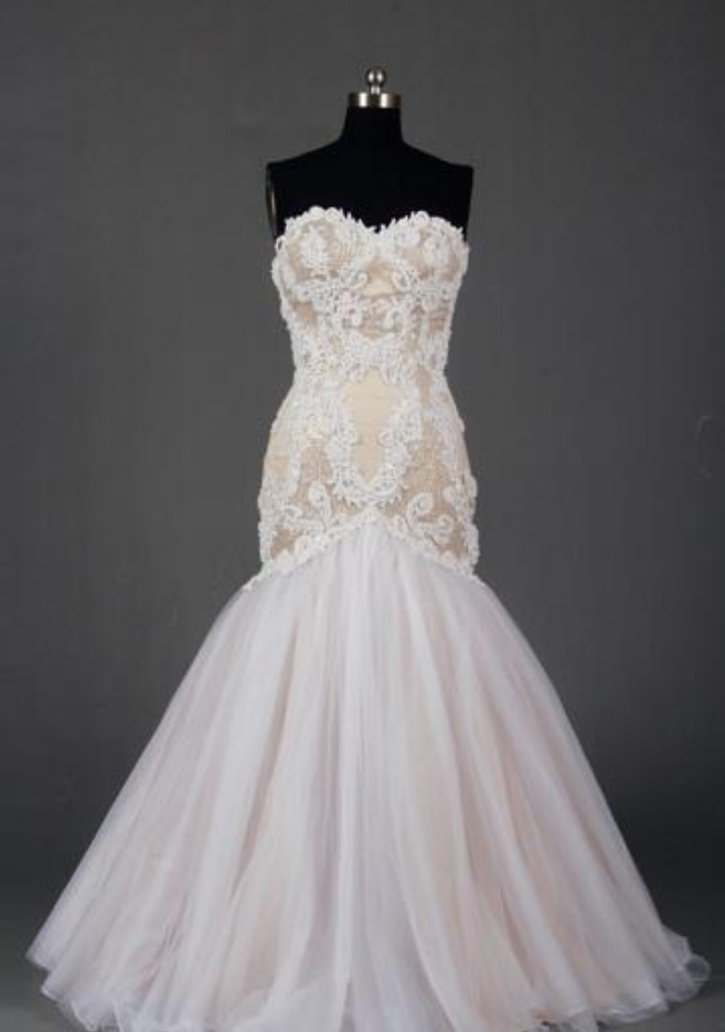 Wedding Dress, New Ivory And Champagne Wedding Dress Mermaid , Lace Wedding Bridal Dress,Wedding Guest Prom Gowns, Formal Occasion Dresses