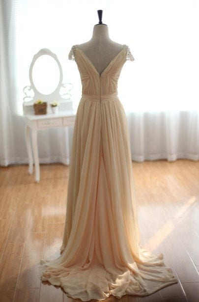 Champagne Wedding Dresses, Colored Wedding Gown, Long Bride Dress