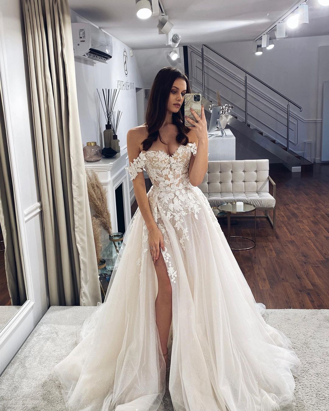 Off-the-shoulder Lace Wedding Dresses, Beach Bridal Gowns