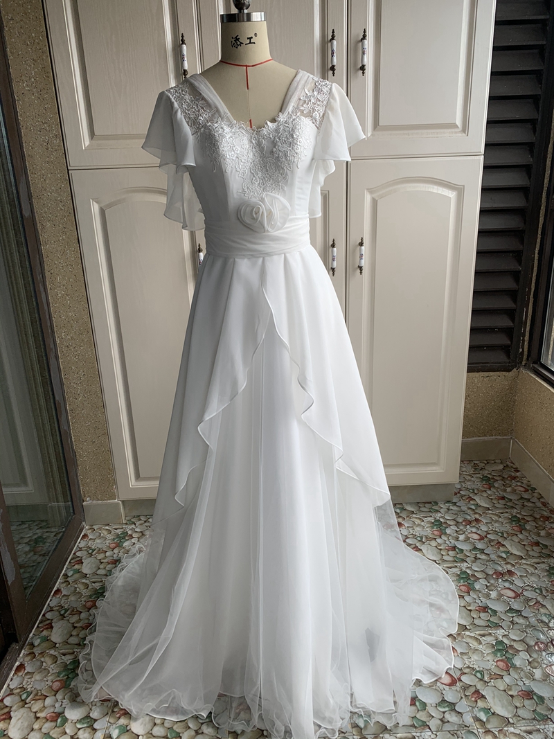 Boho Wedding Dresses, Chiffon Wedding Dresses, Long Bride Dress