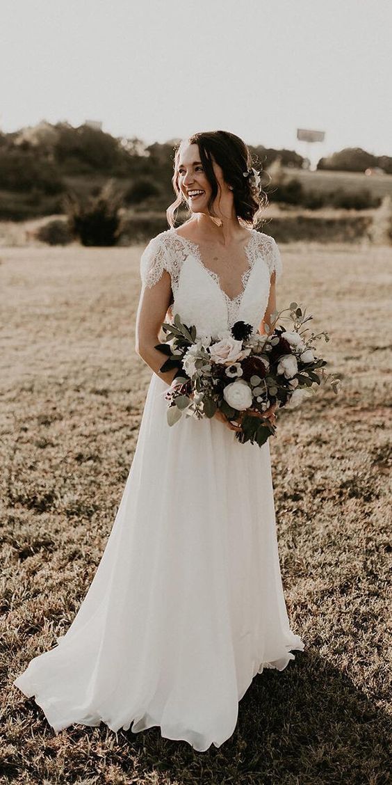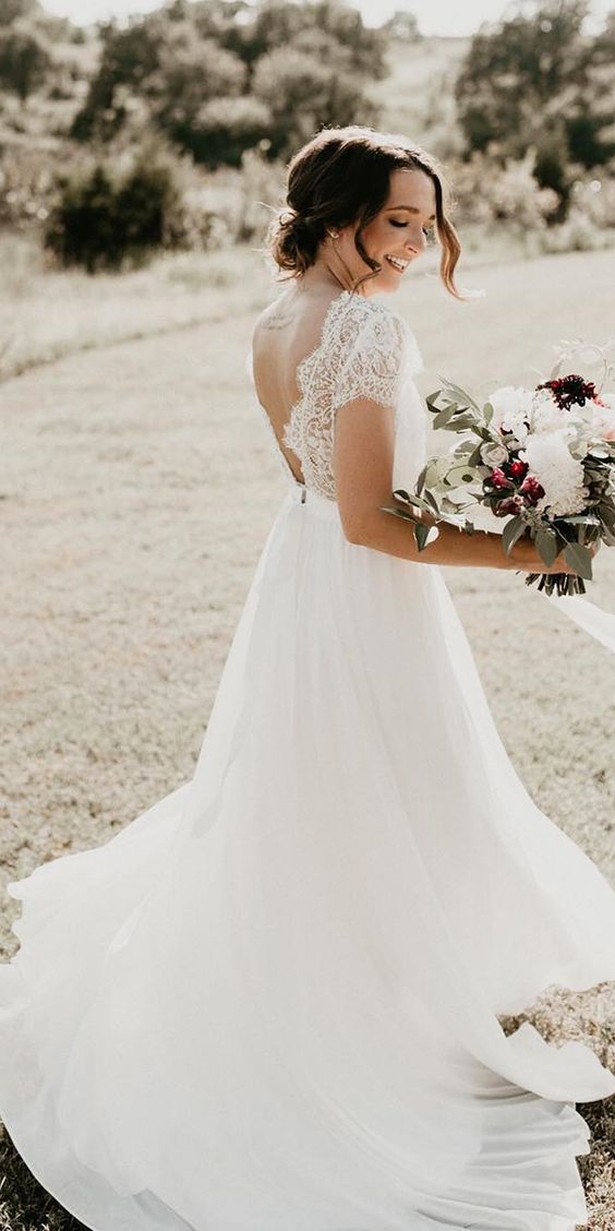 Long Bridal Dresses with Short Sleeves, Lace and Chiffon Wedding Dresses
