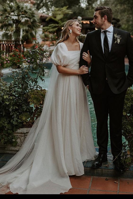 Gauze Fabric White Wedding Dresses, Long Bridal Dresses