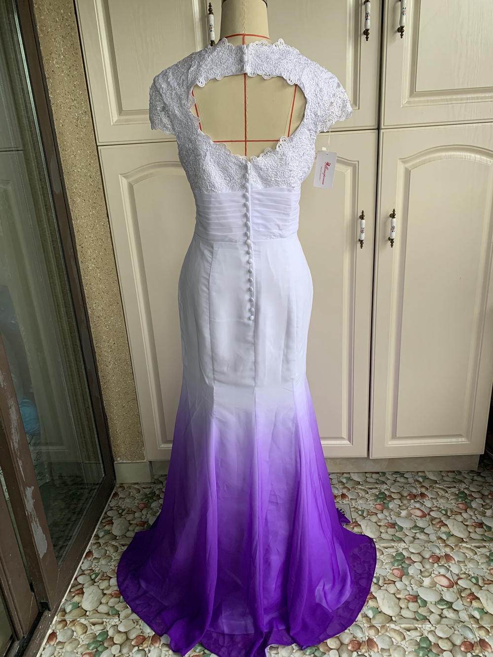 White Purple Ombre Wedding Dresses, Colored Bridal Dresses, Mermaid Wedding Gown