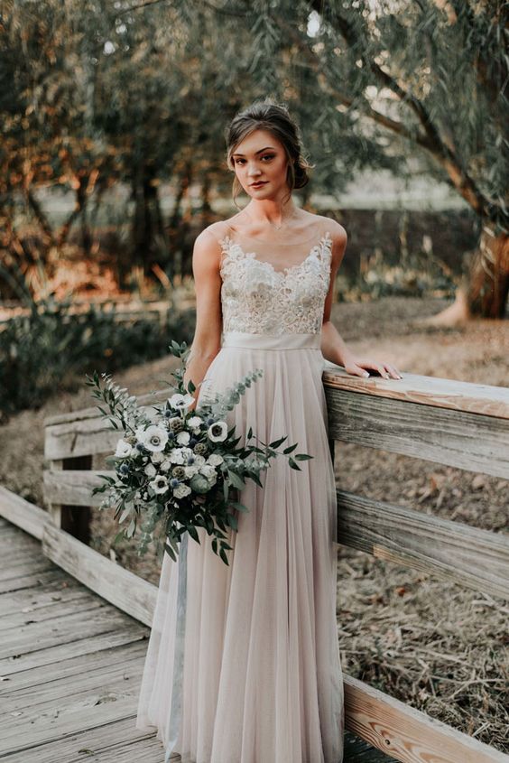 Bohemian Wedding Dresses with Lace Appliques, Beach Bridal Dresses,Champagne Wedding Gown