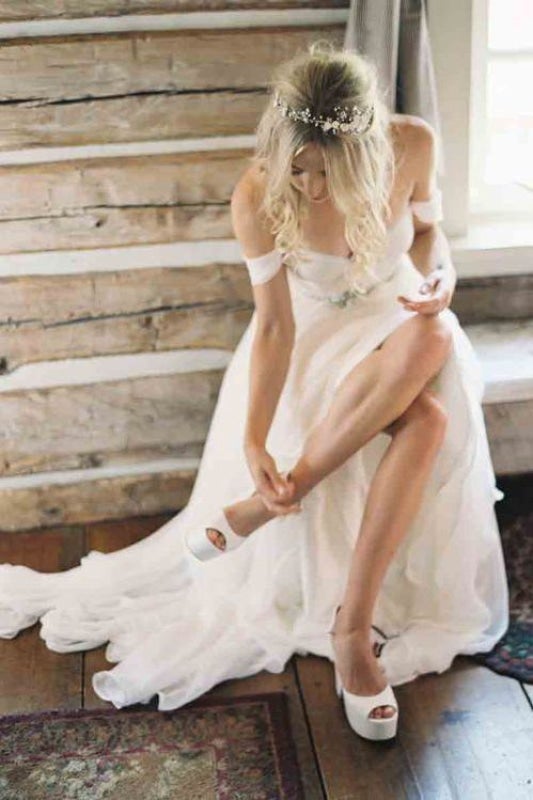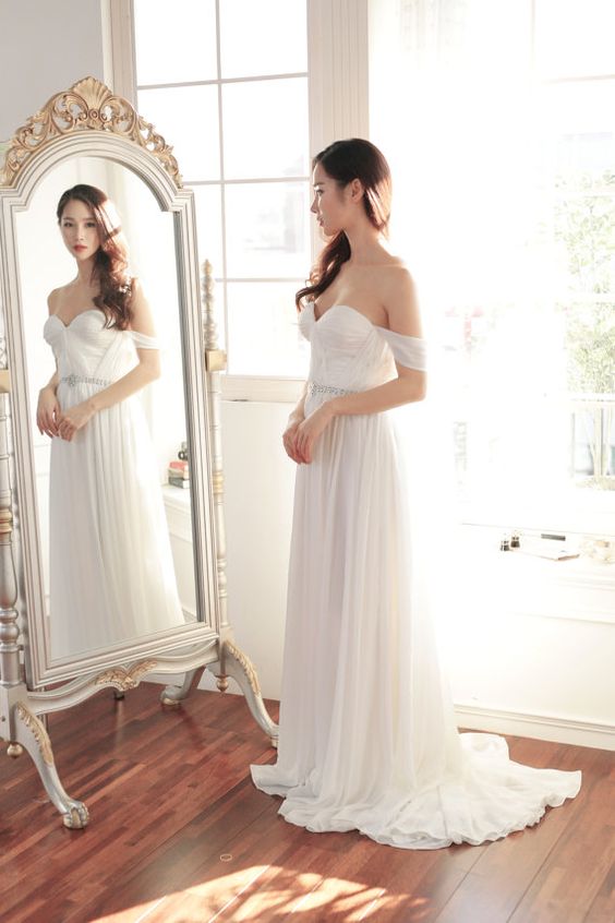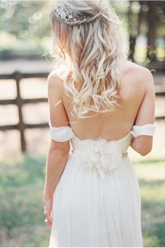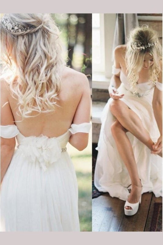 Long Boho Wedding Dresses, White Beach Wedding Dresses, Dress for Wedding Party Women