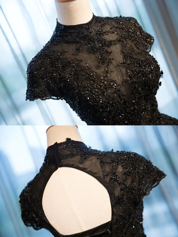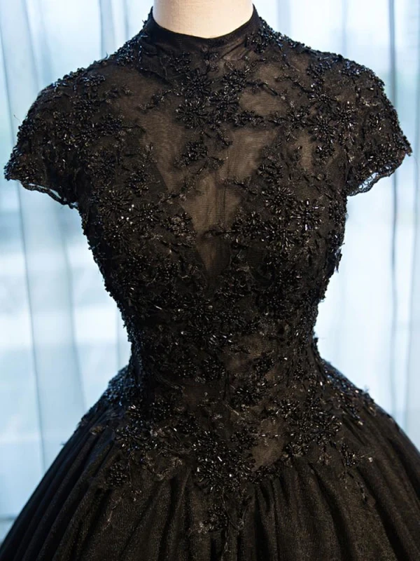 Black Wedding Dresses, High Beaded Bridal Gowns, Colored Wedding Gowns