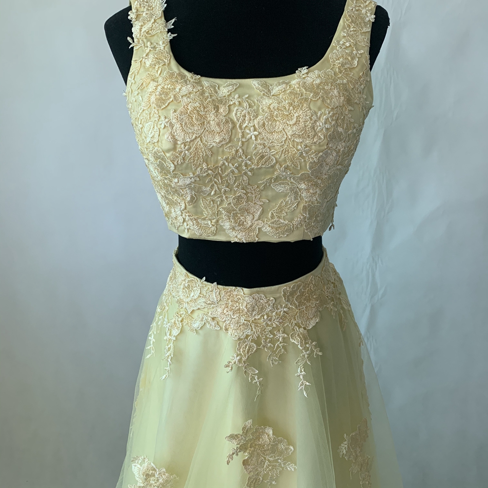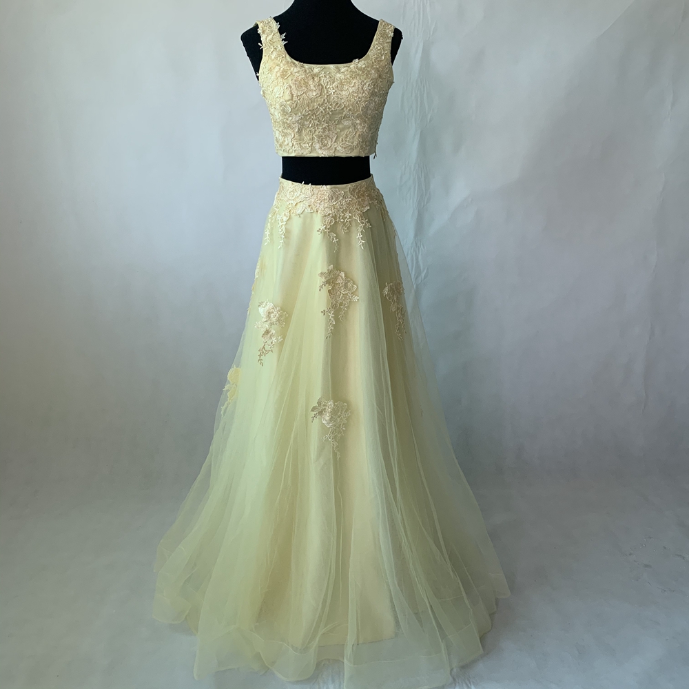 Pale Yellow Two Pieces Prom Dresses, Formal Party Dresses, Wedding Party Dresses for Bride