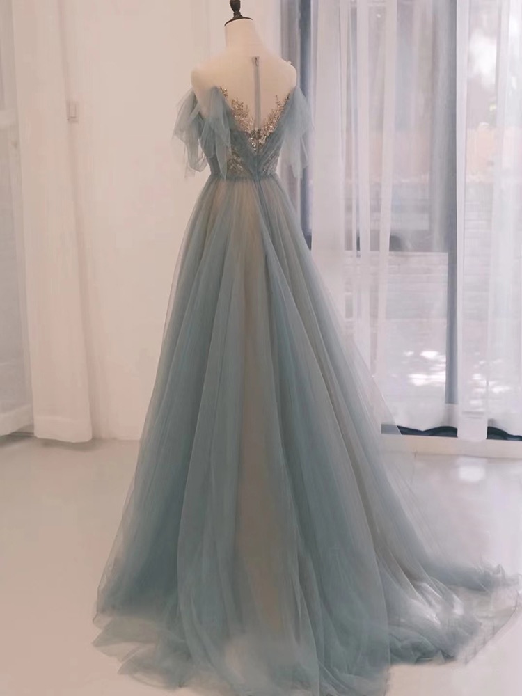 Delicate Blue Prom Dresses, Long Evening Dresses, Wedding Guest Dresses with Beading